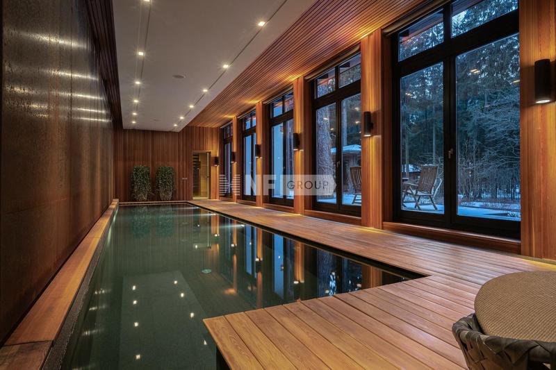 В КП Шервуд на Новой Риге можно приобрести дома со всеми удобствами площадью от 426 до 2 247 кв. м на земельных участках площадью от 19 до 200 соток. Архитектурные решения отличаются разнообразием — от классицизма до ярких образцов конструктивизма.